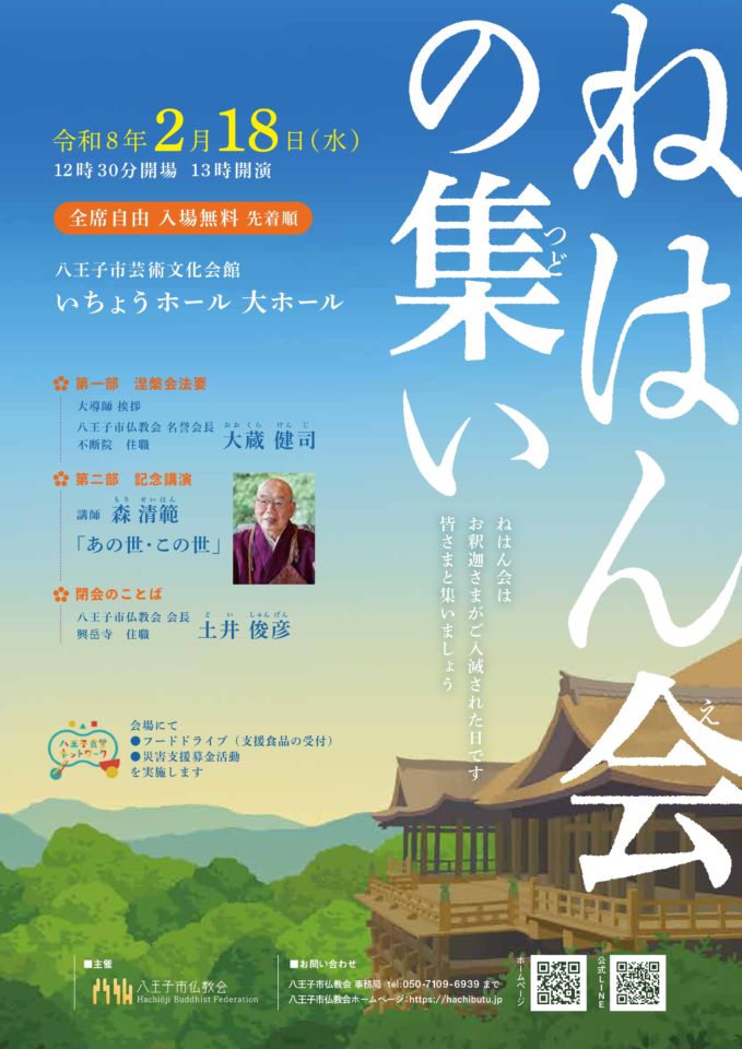 八王子市仏教会主催 三仏忌の1つである涅槃会のご案内です